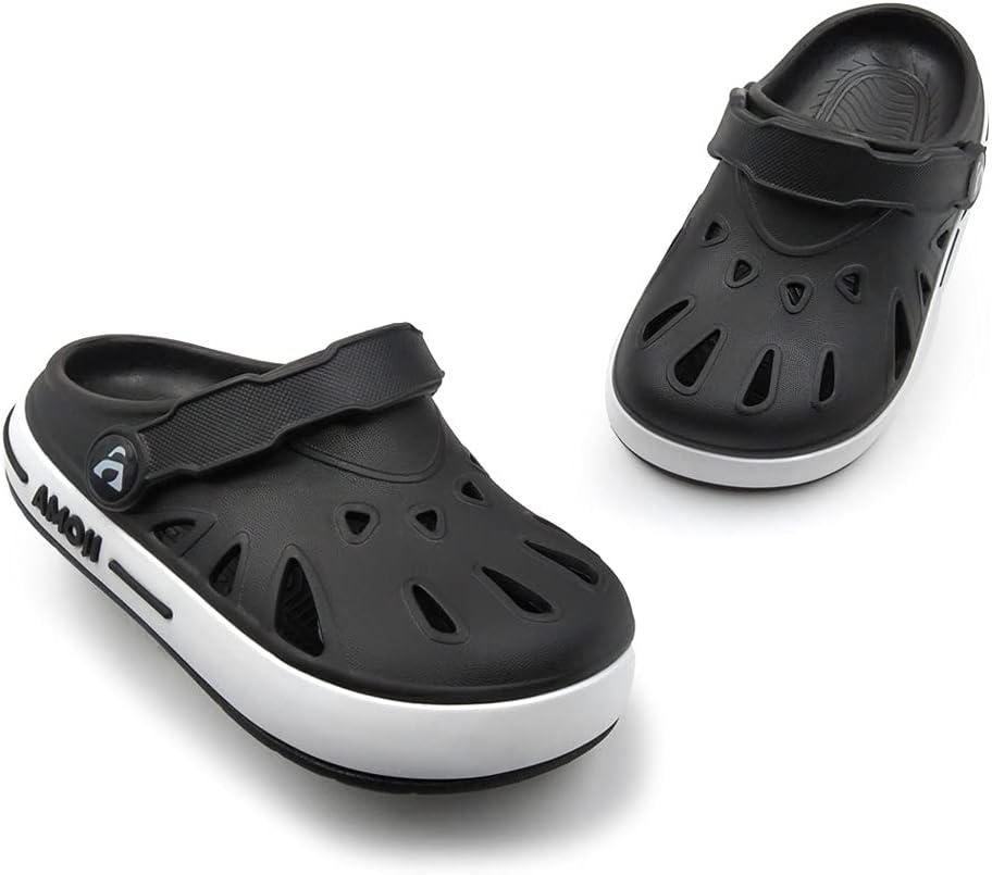 Amoji Boy Garden Clogs Girl Slip On Sandals Toddler/Little Kid/Big Kid(Black/White)