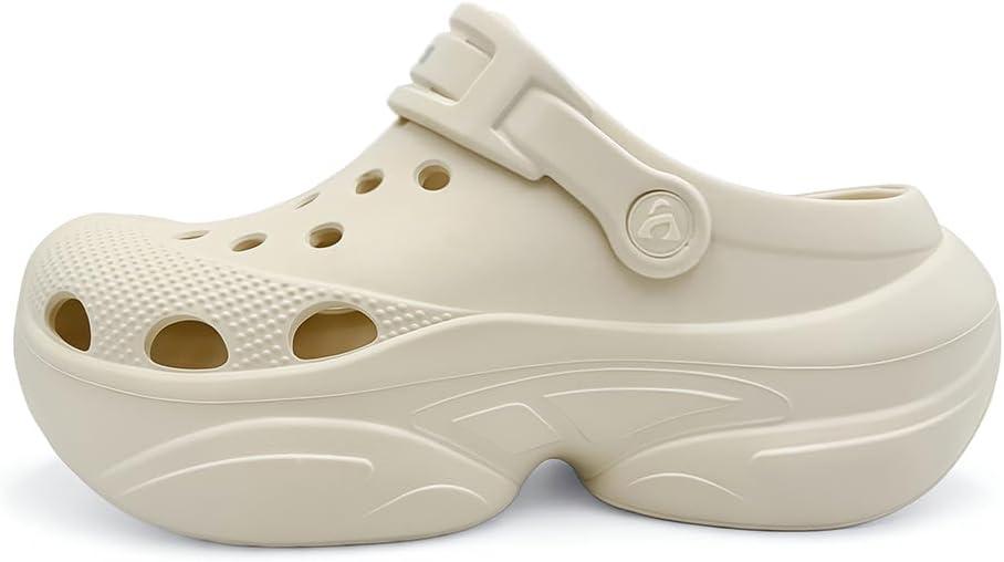 Amoji Women Platform Clogs Thick Yard Garden Shoes Summer Sandals 0859(Beige)